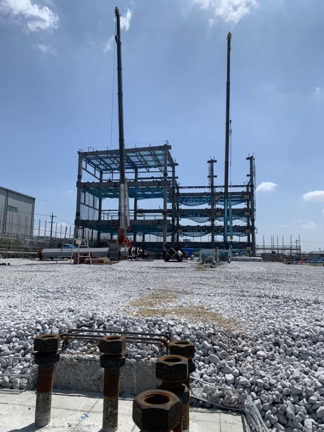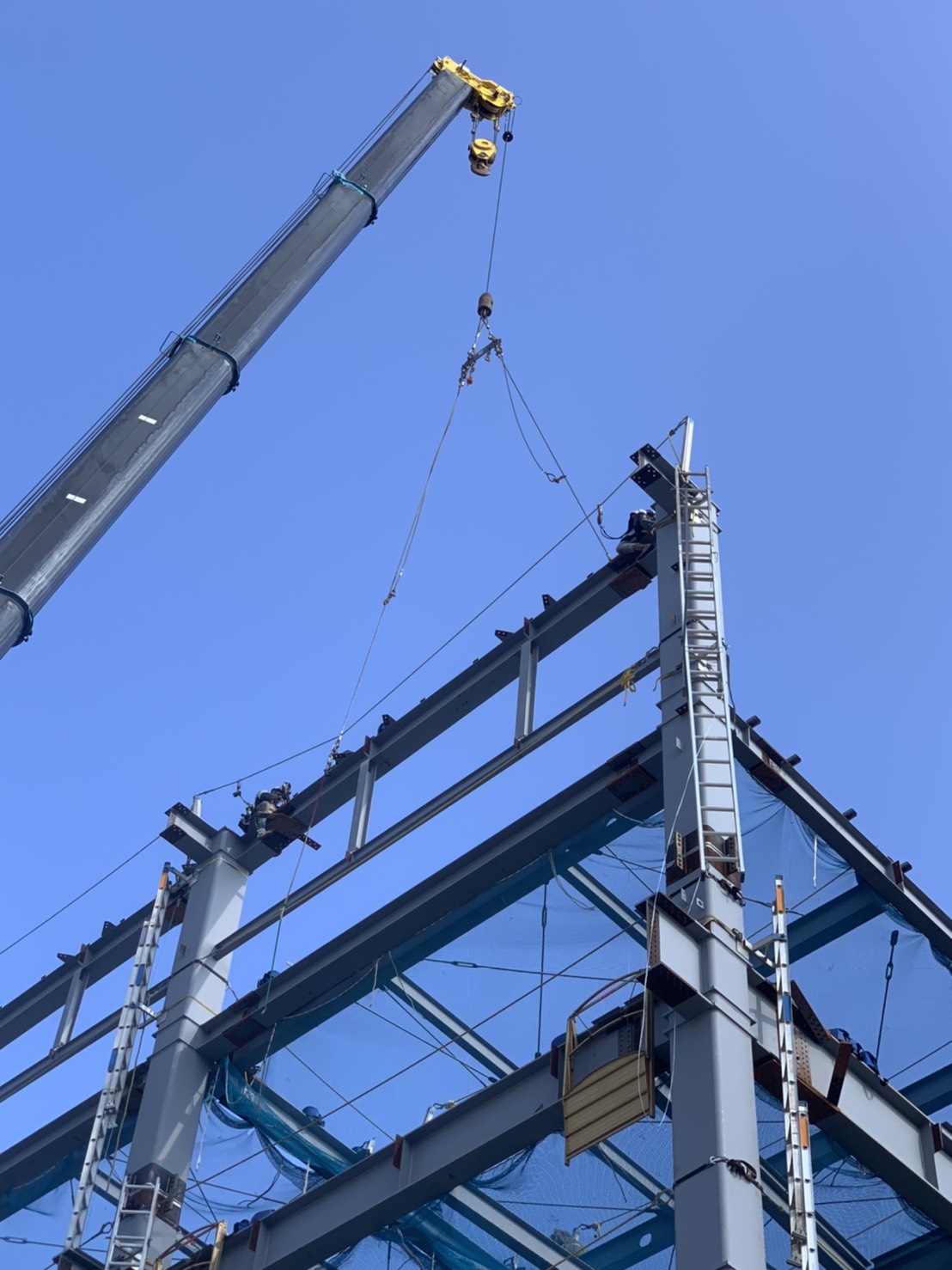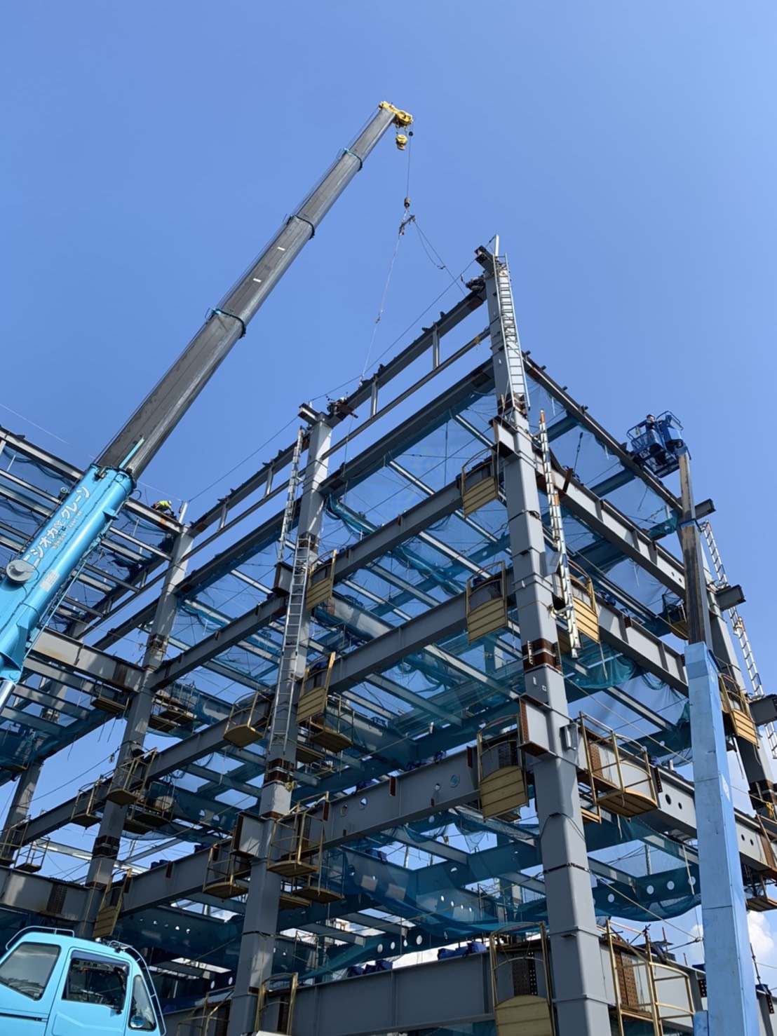 そんな中鉄骨建方は、着々と行っております!スッキリした建物でやりやすいけど、やはり暑さには参ります💦💦