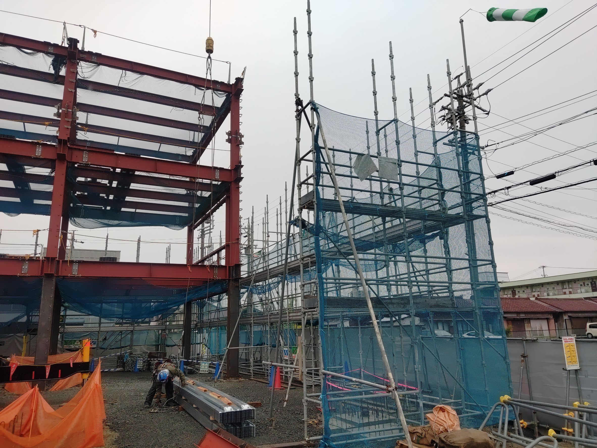 こんばんは❗️ 岐阜県多治見市で施工しております、鉄骨建方の様子になりま …