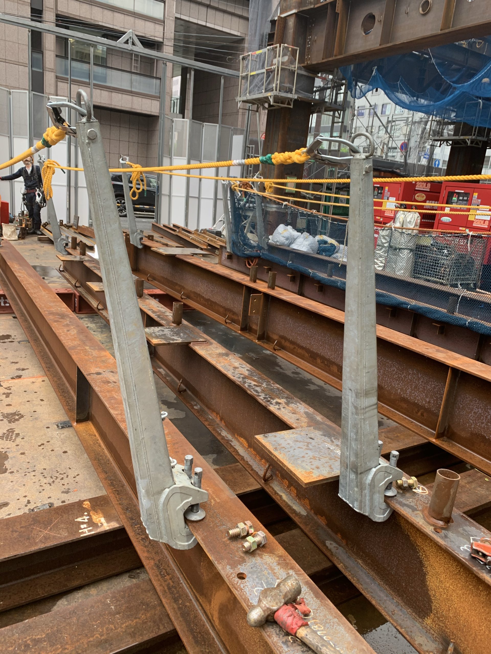 2台のタワークレーンを使いながら、狭い場所で建方を行っております。