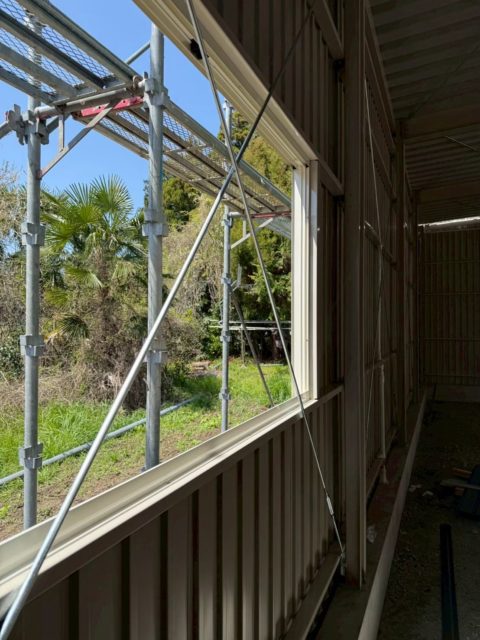 愛知県新城市にて倉庫の建方、壁・屋根工事も行ってきました。