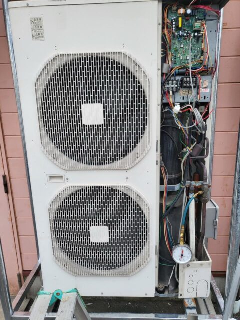 今日の作業は、空調設備で、室外機の架台入れ替え工事でした。